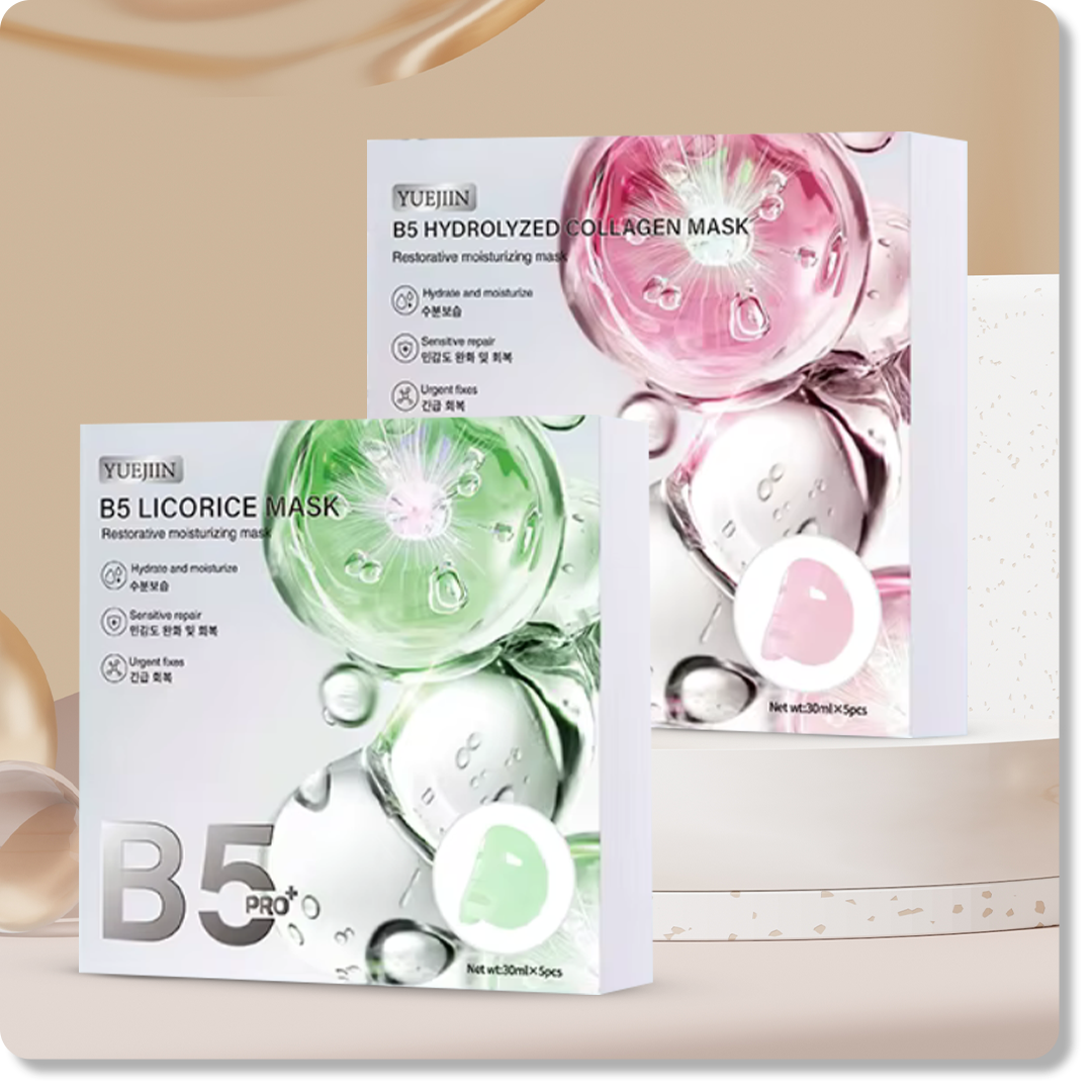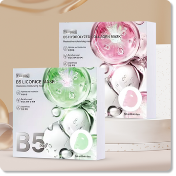 The B5 Mask Series – Complete Skincare in One Box offers a full regimen of targeted treatments in one sleek set. With multiple sheet masks infused with collagen and other high-performance actives, each application hydrates, calms, or brightens depending on your skin's needs. It's like a personalized facial, minus the appointment.